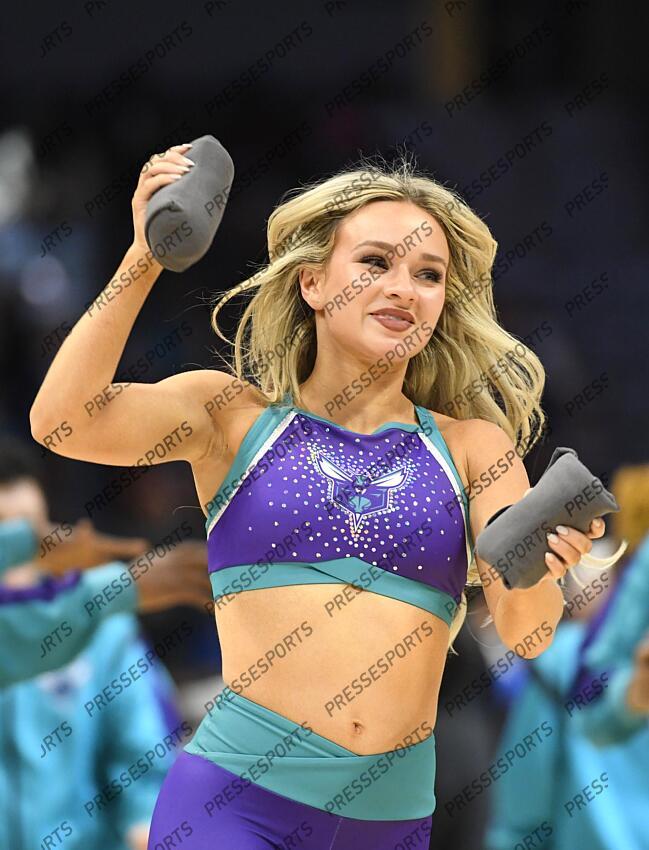 Mar 3, 2026; Charlotte, North Carolina, USA; The Charlotte Hornets Honey Bees perform during the first half against the Dallas Mavericks at the Spectrum Center. Mandatory Credit: Sam Sharpe-Imagn Images NBA: Dallas Mavericks at Charlotte Hornets