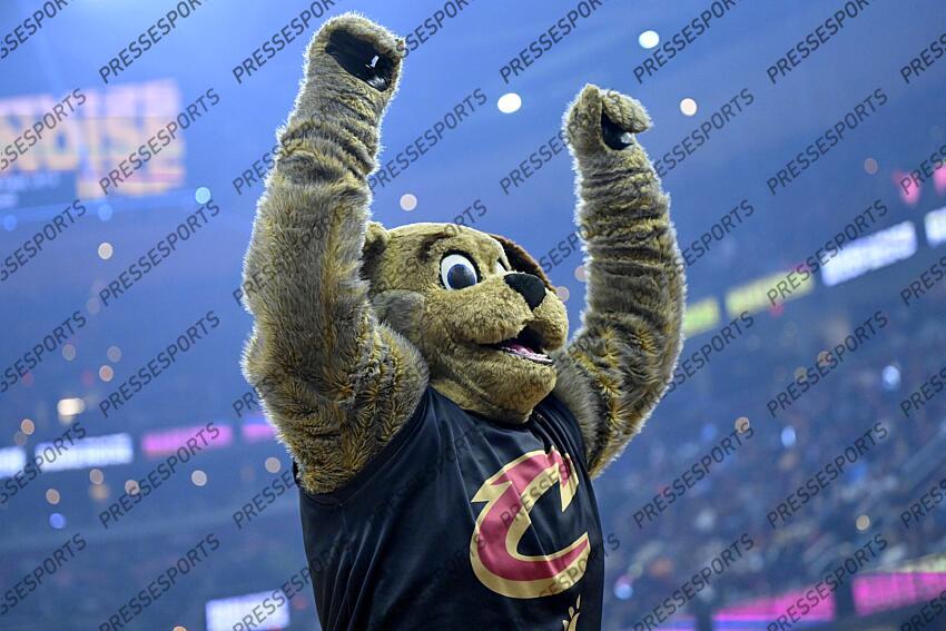 Mar 3, 2026; Cleveland, Ohio, USA; Cleveland Cavaliers mascot Moondog interacts with fans before a game against the Detroit Pistons at Rocket Arena. Mandatory Credit: David Richard-Imagn Images NBA: Detroit Pistons at Cleveland Cavaliers