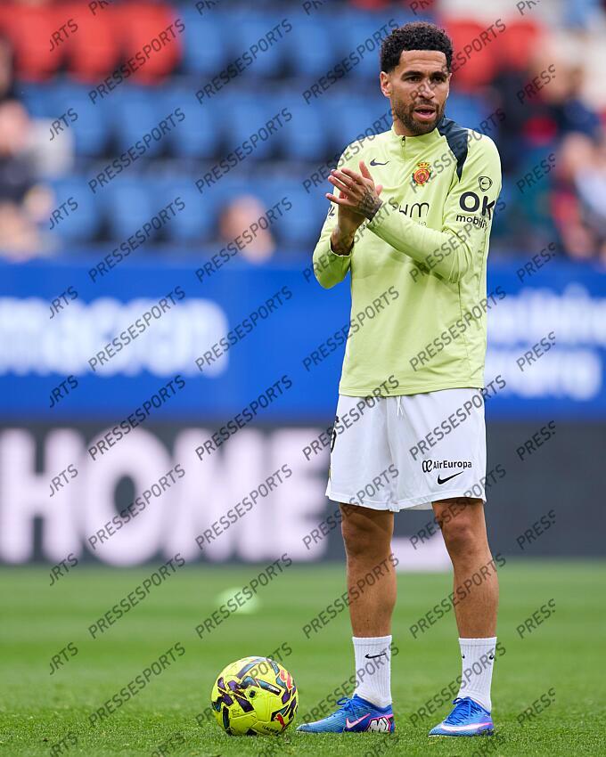 Omar Mascarell of RCD Mallorca reacts prior to the LaLiga EA Sports match between CA Osasuna and RCD Mallorca at El Sadar on March 7, 2026, in Pamplona, Spain. OSASUNA-MAJORQUE (2-2)