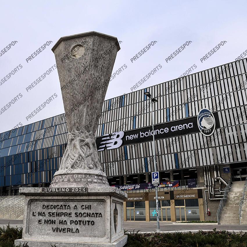 General view of Europa League cup before Atalanta BC vs Bayern Monaco FC, Chanpions League 2025-26 Round of 16, first leg, game at New Balance arena in Bergamo BG, Italy, on March 19, 2026. PUBLICATIONxNOTxINxITA Copyright: xDavidexCasentini/IPAxSportx/xipa-agency.netx/xx IPA_72685847 IPA_Agency_IPA72685847 ATALANTA BERGAME-BAYERN MUNICH (1-6)