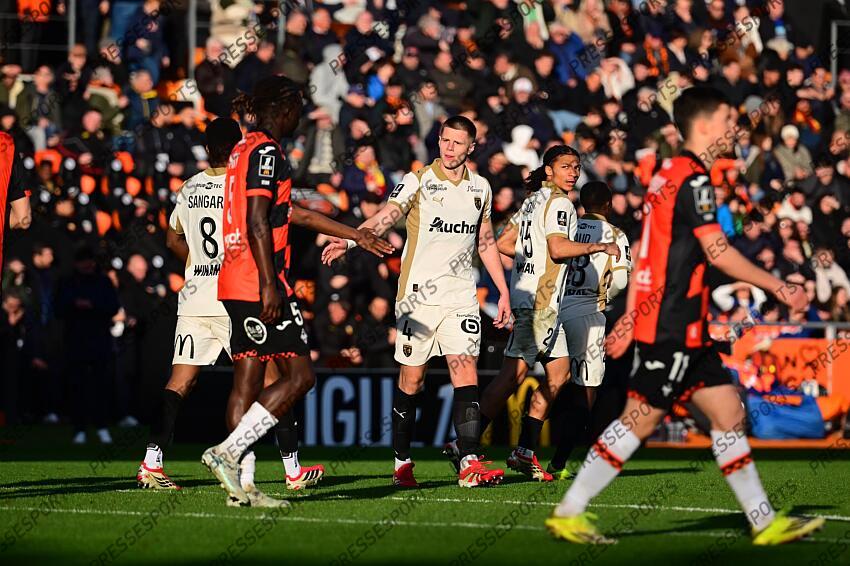 celik (nidal) FOOT L1 2026 LORIENT-LENS (2-1) STADE DU MOUSTOIR LORIENT FRANCE 14/03/2026 AUTISSIER JEAN BAPTISTE joie du 1-1, 49'