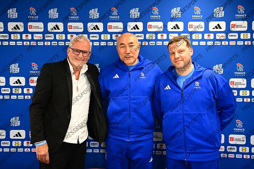 bana (philippe) dujshebaev (talant) joli (guillaume) HAND 2026 ENTRAINEMENT FRANCE MAISON DU HANDBALL CRETEIL FRANCE 16/03/2026 LAHALLE PIERRE
