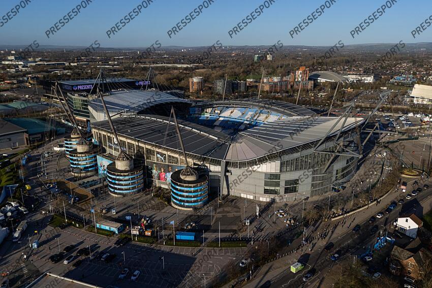 17th March 2026 - UEFA Champions League - Round of 16 (2nd Leg) - Manchester City v Real Madrid - A general aerial view (GV) of the Etihad Stadium - Photo: Simon Stacpoole / Offside. MANCHESTER CITY-REAL MADRID (1-2)